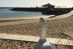 Furthermore, just stroll along the beach promenade past a stylish restaurant “Chiringuito “ out in the sea and you’ll soon discover the main horseshoe larger sheltered sandy bay of Caleta de Fuste and the cosmopolitan marina with its bars and restaurants at one end. Caleta is a popular choice with families, due to the safe man made beaches. The horseshoe bay has undergone a massive re-development, doubled in size. You’ll also find water sports here, facilities include pedalos, windsurfing, diving and sailing, boat trips and even a submarine offering undersea excursions. At both beaches you can hire sunloungers and parasols.